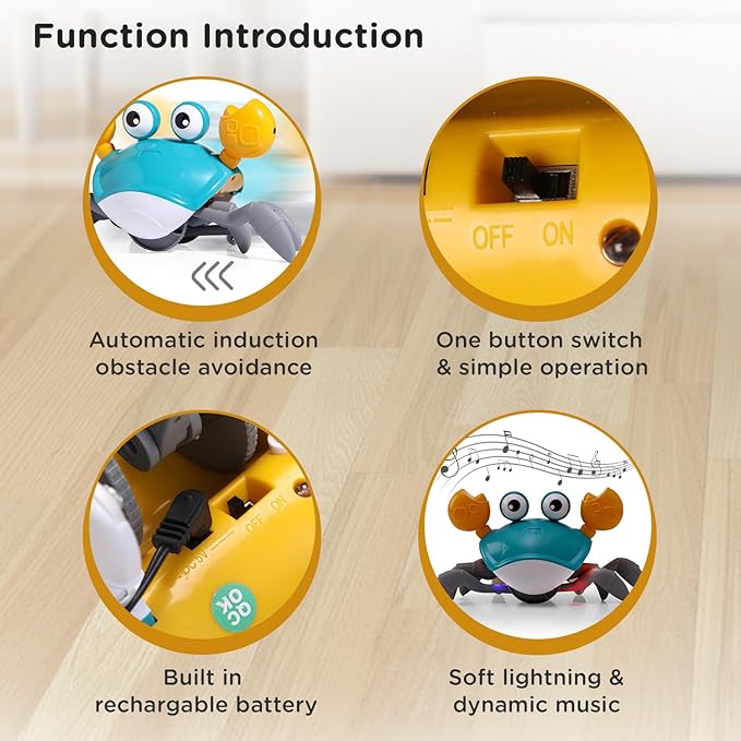 This crawling crab uses smart infrared sensors to move and avoid obstacles, motivating babies to chase it. Dads can turn floor time into active bonding, improving motor skills during simple daily routines.