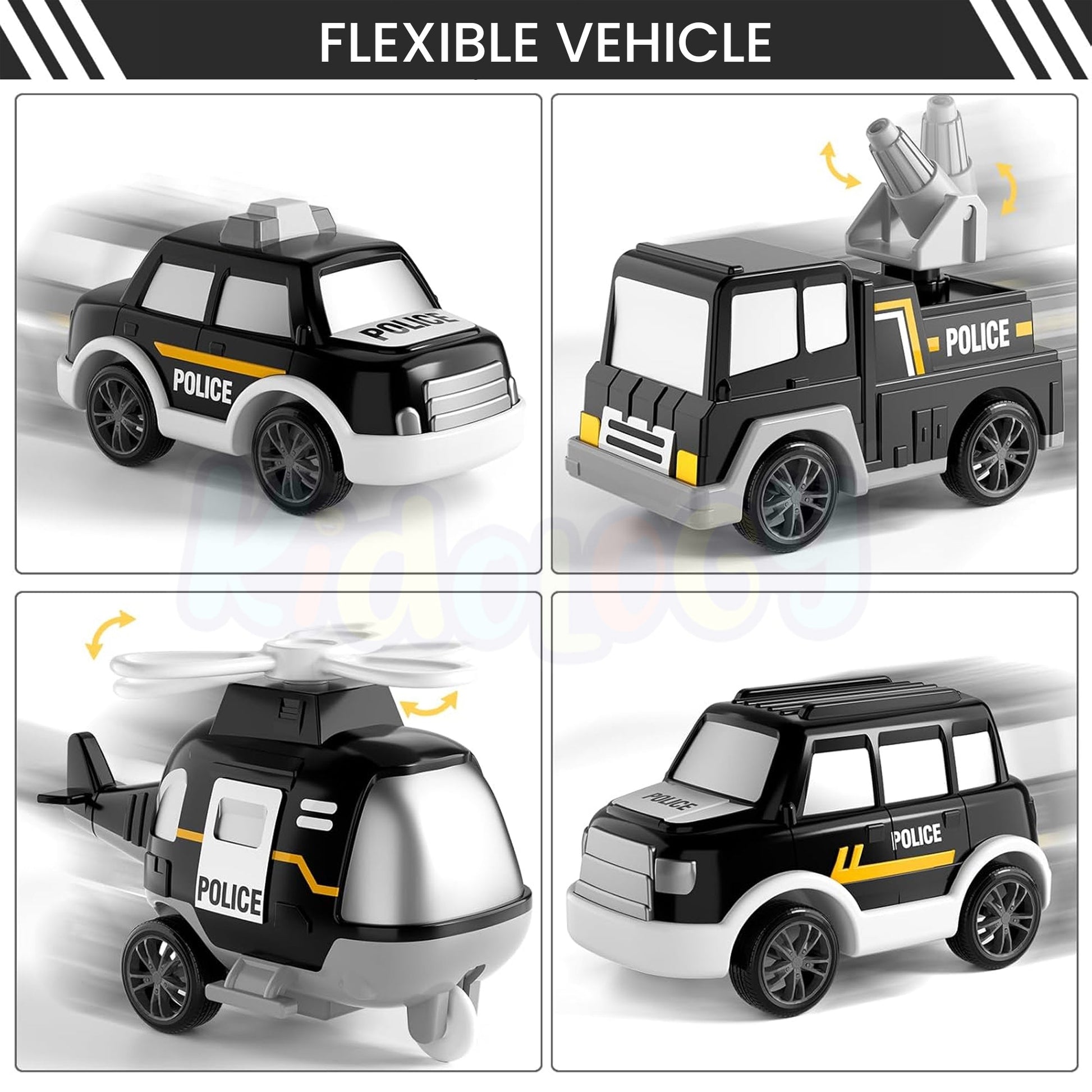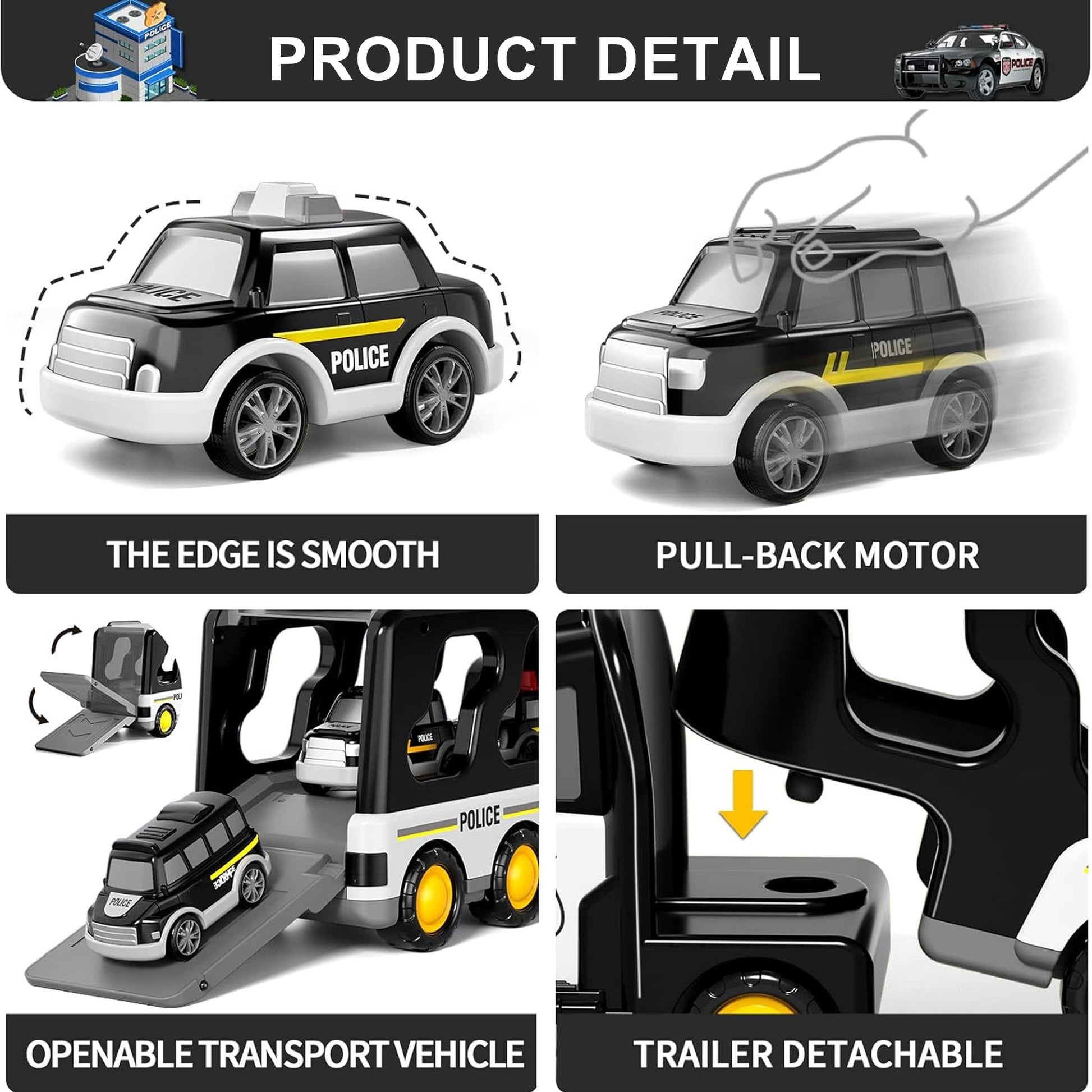 Themed rescue play boosts storytelling, problem solving, and fine motor skills as children load/unload vehicles and create missions.