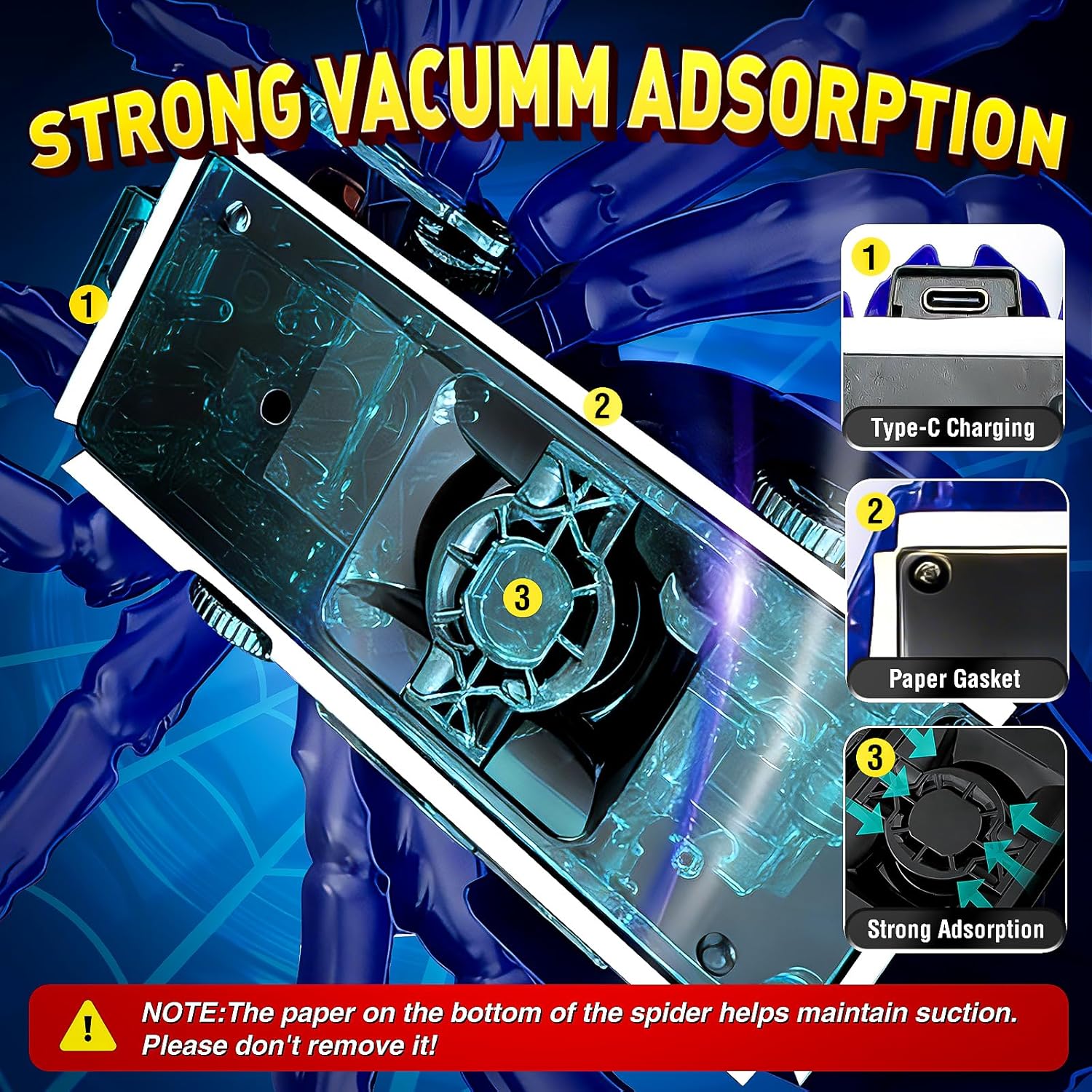The spider uses strong suction and balanced gearing to crawl on walls, ceilings, glass, and mirrors with a lifelike motion. That realistic movement creates convincing pranks and dramatic video clips.